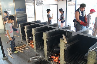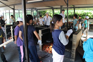 初めての野外炊事に取り組んでいます。おいしいすきやき風煮ができました。