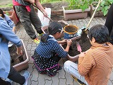 そこで,今日の活動は,その目標に向けての第一歩です。公益財団法人「花と緑の農芸財団」様からいただいたビオラや金魚草,ノースポールの苗とチューリップの球根をプランターや花壇に植えました。まだまだすべては植えられていませんが,これから中間休みや昼休み等の時間を使って,曜日ごとの担当の子どもたちと教員で協力して活動を進めていきます。