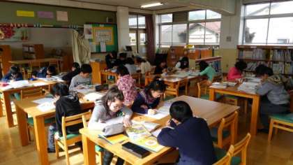 4年生は,社会科の『琵琶湖疏水』について学習をしたことを,一人一人が新聞にまとめています。新聞に必要な資料を図書室やインターネットで調べて,完成させます。