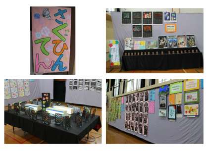 今日から3日間、体育館で作品展を開催しております。子どもたちの力作が並びました。北野中学校の生徒や交流している学校の児童の作品も展示しています。お忙しいことと存じますが、ご鑑賞いただけますと幸いです。
