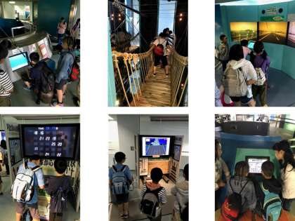 大鳴門橋架橋記念館に入り,クイズやゲームを楽しみました。お昼ご飯をいただいています。