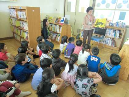 5月16日(火)中間休み,1年生の子どもたちは,みんなで図書館へ行きました。地域の図書ボランティアの方々が,2冊の絵本の読み聞かせをして下さいました。お話の楽しさや面白さを味わうことができて,子どもたちはとても嬉しそうでした。次回の読み聞かせを,楽しみにしているようです。