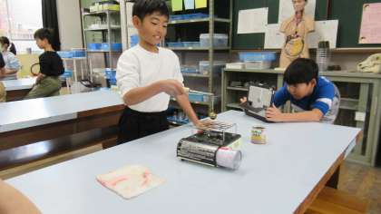 子どもたちは、火を使う実験ということで安全に気をつけて、真剣に取り組みました。