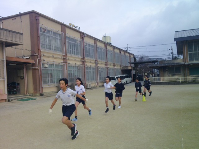 雪がちらつく寒さの中でしたが、京キッズRUNの練習に取り組みました。