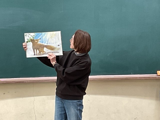 今朝は読み聞かせに来ていただきました。「手ぶくろを買いに」という新実南吉さんの有名なお話です。こぎつねが間違えてきつねの手を出してしまったのに、ちゃんと手ぶくろを買って帰れたというお話です。捕まってしまうのかなと子どもたちは心配しましたが、大丈夫だったのでよかったなと思ったようでした。冬らしい素敵なお話でした。ありがとうございました。