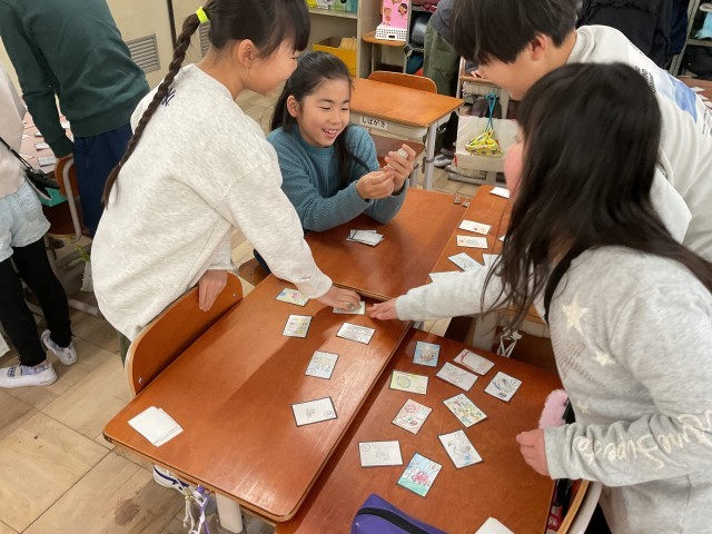 自分たちで作ったかるたを使ってかるた大会をしました。