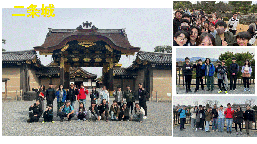 最初に訪れたのは、社会科でも学習した二条城です。ここは、15代将軍・徳川慶喜が大政奉還を行った場所として知られています。子どもたちは鶯張りの廊下を歩きながら、当時の歴史に思いをはせて見学しました。その後は、広々とした庭園の散策も楽しみました。