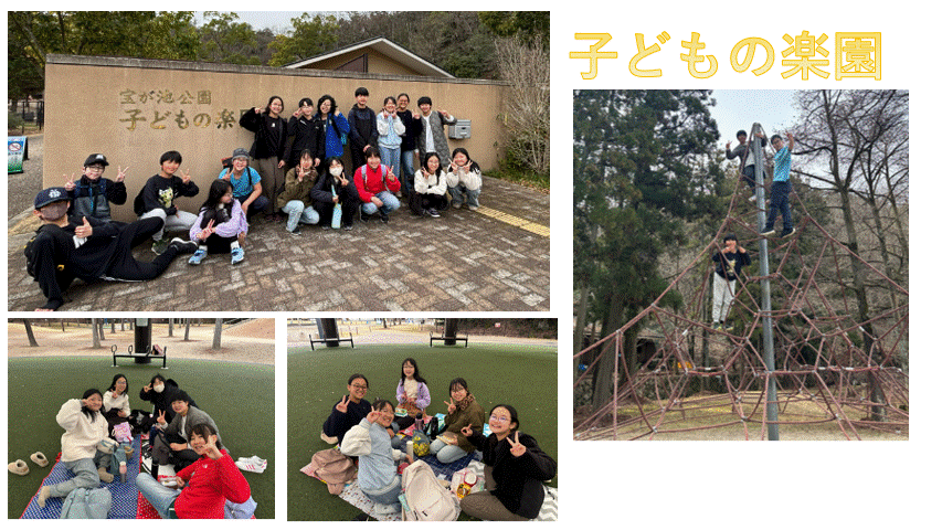 次に、地下鉄に乗って宝が池の「子どもの楽園」へ向かいました。お家の方が心を込めて作ってくださったお弁当を味わったり、遊具で思い切り遊んだりと、時間いっぱい楽しむ姿が見られました。