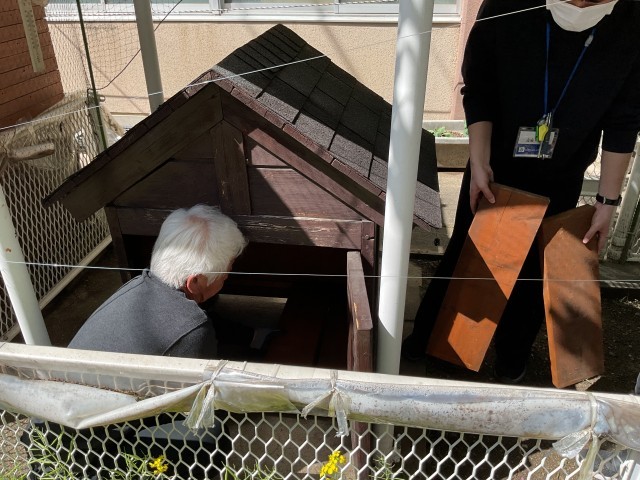 そのミルクが外で過ごしてもゆっくりできるようにと地域の比賀江さんがお家を作ってくださいました。