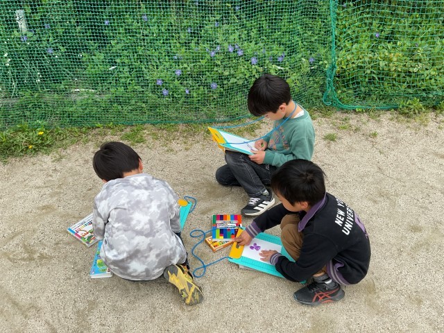 みんな、お花や虫など自分で探して、丁寧に描きました。