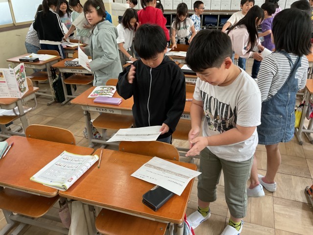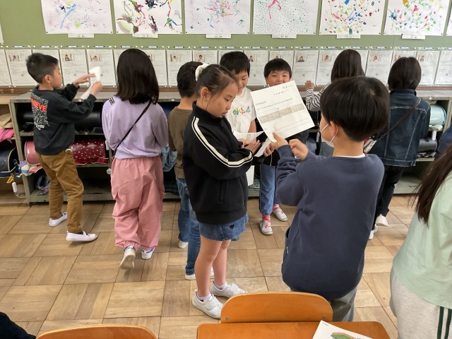 音楽科の「リズムでなかよくなろう」の学習で4つのリズムのパターンを組み合わせてリズムづくりをしました。