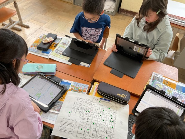 社会科の「わたしたちのまち」の学習で大将軍の地域には、どんな場所があるのかを調べました。