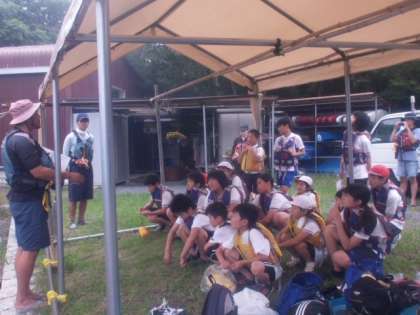 登茂山公園にある自然学校にてシーカヤックの体験をしました。漕いでいるところの画像がないのが残念ですが,全員沖に向かって漕ぎ出し,向かいにある島を1周してきました。