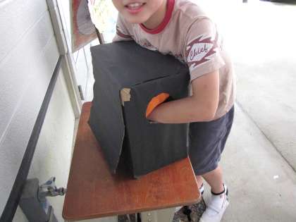 今日は 第2回ブラックボックス です。さて、箱の中身は 代表的な 夏野菜です。今日のこんだてにも 使われています。