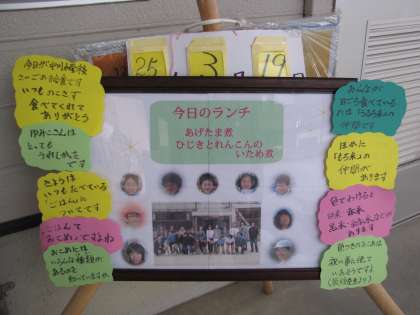 今日が中川小学校最後の給食です。いつも残さず食べてくれてありがとう。