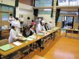 今日は、給食交流会です。 今日のこんだては ごはん 肉じゃが 牛乳 ごま酢煮 で...