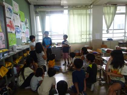 今日は1回目のたてわり会議。グループ顔合せの日でした。みんな少し緊張した様子で各教室に集まり,リーダーの話を聞いていました。自己紹介の後,これからどんな遊びをみんなでしていくのかを決めました。リーダーの6年生はみんなの意見をしっかりと聞いて意見をまとめていました。