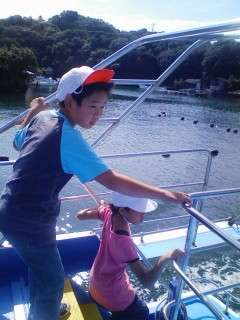 潮風を受けて,船の上から海を眺めました。