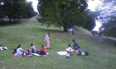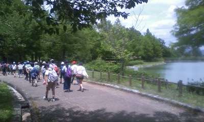 天気は良く景色はよく,それぞれの見学時間は短いですが,一つ一つを満喫しています。只今,木陰を探して昼食中です。おいしいお弁当を楽しく食べています。