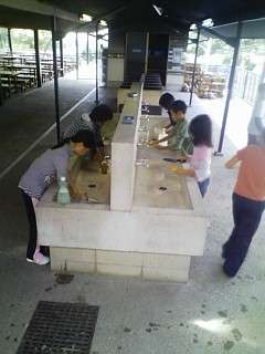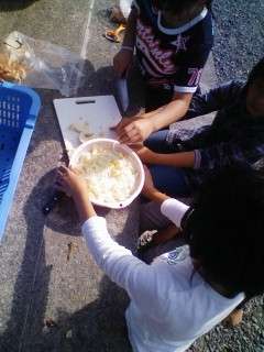 今日も一日がんばるぞー!と,子ども達は初めての飯盒炊さんに挑戦。