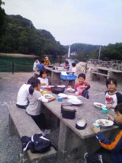自分達で作ったおいしいカレーを,みんなもりもり食べてます。