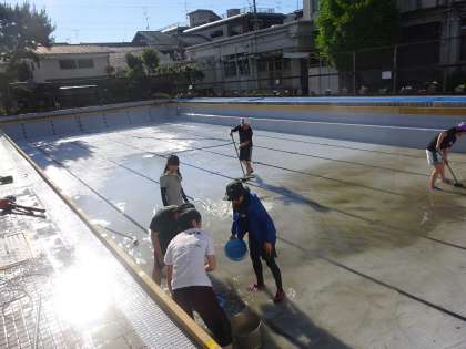 ほどよくぬれながら,楽しく掃除ができました。なかなか水がぬけなかったため,仕上げは教職員で行いました。来週から,安全に気を付けて楽しく学習していきます。