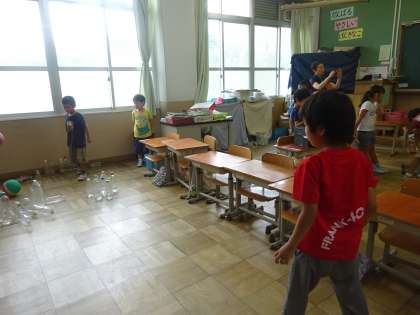 2組は3つのコーナーに分かれ,どのコーナーも楽しそうでした。ボウリングはきれいにピンが転がるのが気持ちよさそうでした。