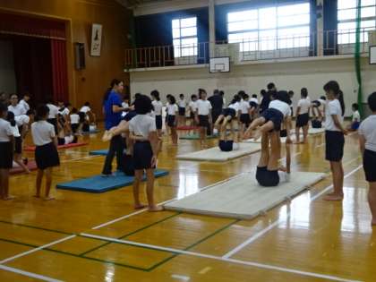 5・6年生は体育「組体操」の学習でした。練習をはじめて数回の姿を見ていただきました。一人一人が真剣に取り組み,6年生が5年生をアドバイスしている様子が見られたのではないかと思います。