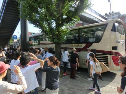 バスの下部に大きな荷物を積み込み,多くの保護者のみなさんに見送られ,バスは出発しました。