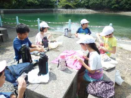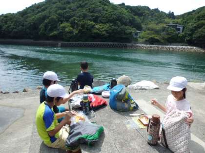 みさきの家に着き,今はお弁当をいただいています。この後は入所式や磯浜観察に向かいます。お天気も良く,良い活動ができそうです。