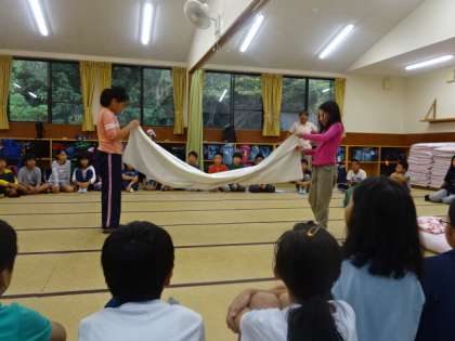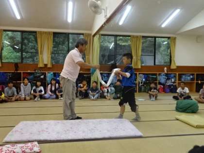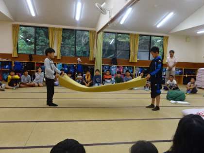 おさらいで代表で数人の子どもたちがやってみました。周りのアドバイスもあり上手にできました。
