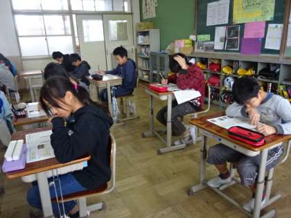 5・6年生は,ジュニア京都検定に挑戦しました。子どもたちは,選択問題に答えた後,京都の文化についての体験文を書いていました。京都には世界に誇れる様々な文化があります。検定に向けて学習を進めることで,自分たちの住む京都に関心を持ってほしいと思います。