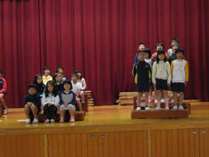 学習したことを,群読や劇遊びや研究発表,ダンスや歌や音楽劇にまとめて発表します。毎日の学習の中でも,相手意識をもち,みんなの前でしっかり話すことをめあてにしてきましたが,体育館のような広い場所で話す機会は,なかなかありません。決められた言葉ではありますが,たくさんの人の前で,よく聞こえる声で話すことができるよう,また,自分たちの表現ができるように,各学年工夫して練習に取り組んでいます。