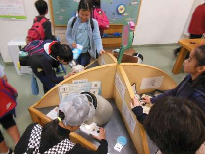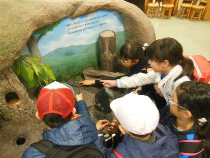 琵琶湖博物館のディスカバリールームでは,五感を使って楽しく学ぶ展示が多くあり,子どもたちはしっかり見学をしていました。