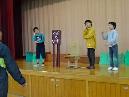 学習発表会に向けてどの学年も熱心に練習に取り組んでいます。3年生は体育館で劇の練習をしていました。