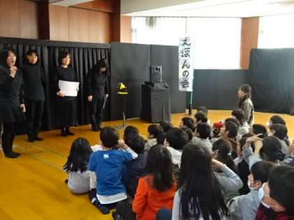 語りかけるような素敵な読み方に子どもたちもすっかり引き込まれてお話の世界に浸っていました。2年生の子どもたちは「読み方がすごく素敵だった。」「馬頭琴の音色にうっとりした。」「心がつながってよかった。」など感想を述べていました。お忙しい中来てくださった嵯峨小PTA絵本の会の方々ありがとうございました。