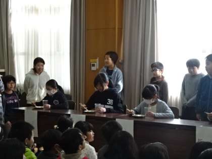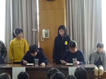 15日(木)は高学年の豆つまみ大会がありました。低学年に続き高学年も盛り上がりました。各クラス2名の代表が1人ずつ順に行います。1回戦,大歓声の元,子どもたちは一生懸命豆をつまんでいます。結果,なんと4年生がトップ。