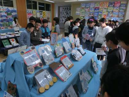 子どもたちは,各自が気に入った作品についての感想を書いています。自由参観に来られた保護者の方も子どもたちの作品をを見てくださっています。