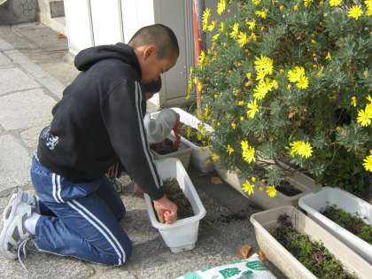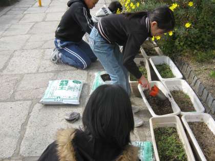 地域の方のご協力で,菜の花の苗をいただき大きく育てていきます。