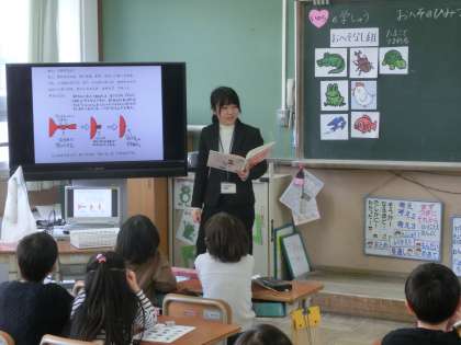 2年生は,学級活動「おへそのひみつ」という授業がおこなわれました。赤ちゃんのへその緒の意味や役割を知り,お母さんのおなかの中にいる赤ちゃんの様子を絵本で確認しました。