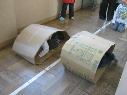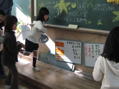 手作り輪投げや,集めてきたマツボックリも大活躍。