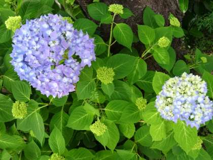雨上がりの天気の中アジサイの花の色合いがとてもうつくしかったです。