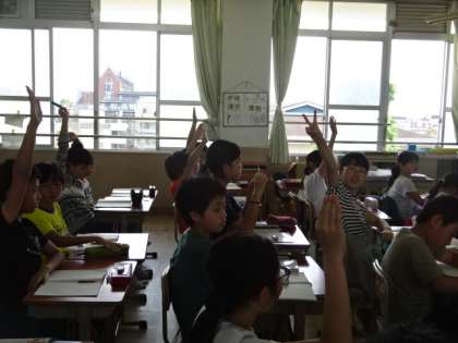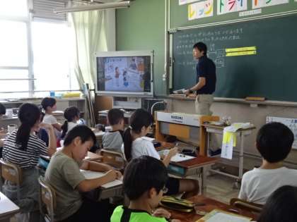 5年生1組は「算数」,2組は「外国語活動」の学習の様子を見ていただきました。1組は子ども同士で指名をする機会ももちながら,多くの子どもが発表することを目指して取り組んでいました。