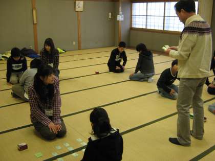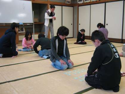 だんだん早くなってきて,上の句を聞くだけで下の句の札を取る姿も見られました。「はい!」の声が響いて,お正月の気分がいっぱいでした。