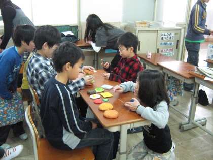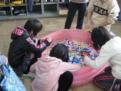 おまつりの夜店みたいに,水に浮かぶスーパーボールをすくえるようになっていました。セルフバーガーは,本物みたいに作ったハンバーガーを使ったゲームです。