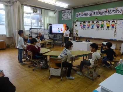 大空学級は,プレゼンや指導者による寸劇を見て,色々な場面でどのように行動すればよいかを話し合いました。