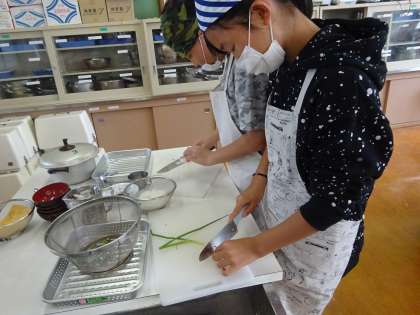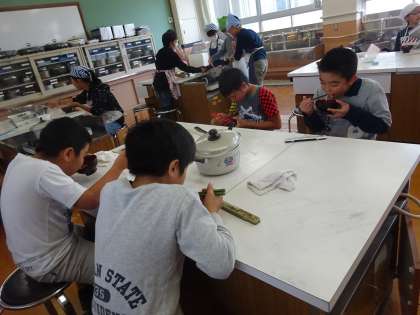 家庭科調理実習みそ汁を作りました(5年)(2)
