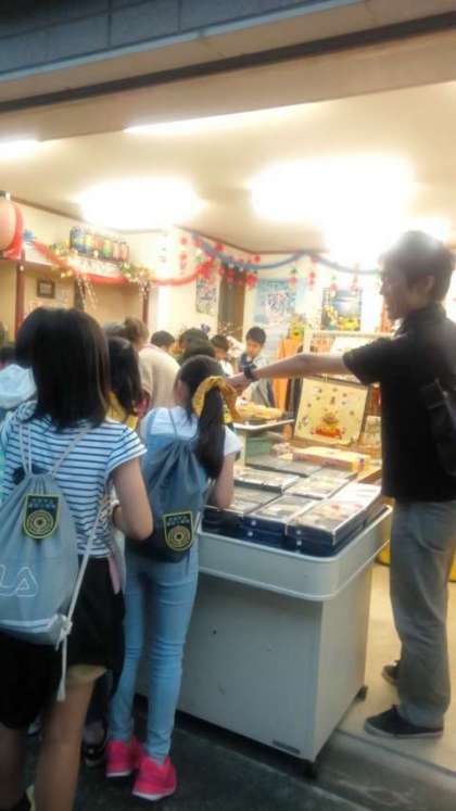 夕食を終えて,子どもたちは夜店でおみやげ選びを楽しんでいます。「あと、40円しかないわ。」「全部使い切ったよ。」等と口々に言いながら友達とあちらこちらのお店をまわりました。どんなおみやげを買って帰ってくるか楽しみですね。