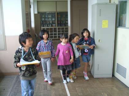 1年生が入学して,2週間が経ちました。学校の中のいろいろな部屋を教えてあげようと,2年生が学校案内をしました。