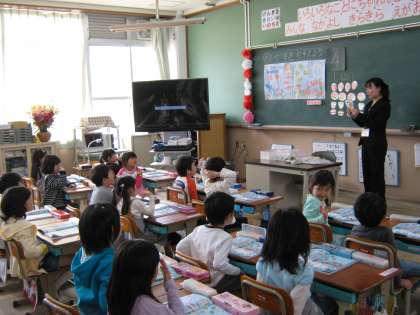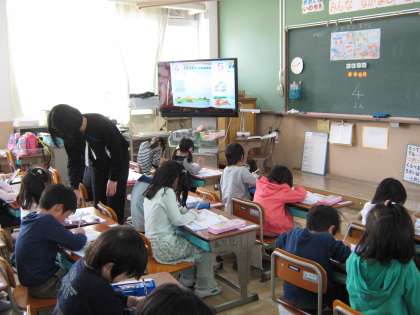子どもたちは緊張気味でしたが,授業が進むにつれていつもの元気な姿が見せてくれました。